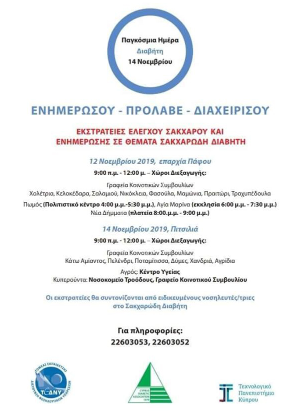 Εκστρατείες Ελέγχου Σακχάρου και ενημέρωση για Σακχαρώδη Διαβήτη (12/11/2019)